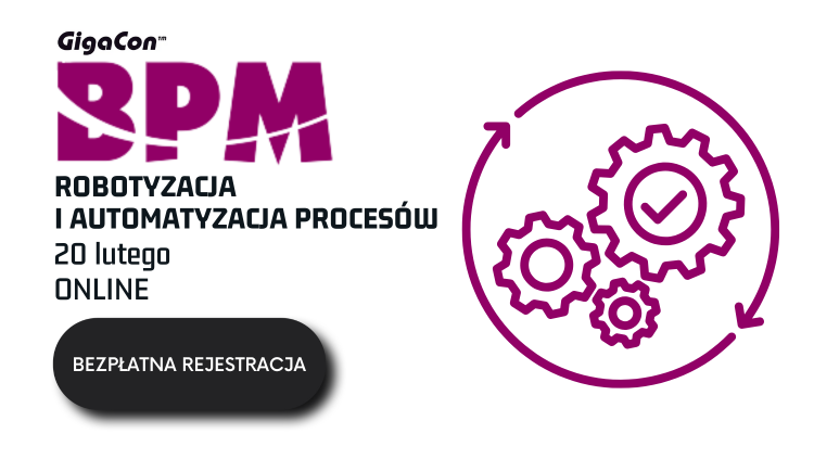 Zapraszamy naszych czytelników do uczestnictwa w najbliższej edycji konferencji GigaCon „BPM. Robotyzacja i Automatyzacja procesów”, która odbędzie się online 20 lutego 2025 r. Wydarzenie poświęcone jest modelowaniu procesów biznesowych. Wiedza z tego zakresu ułatwia zarządzanie firmą. Właściwe decyzje i działania, szybka identyfikacja problemów, sprawny przepływ informacji to zalety prawidłowego wykorzystywania umiejętności oraz narzędzi.